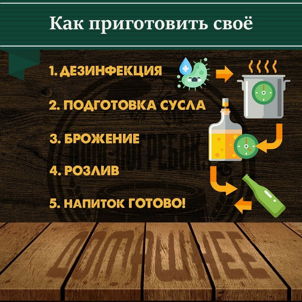 | Состав | Солодовый экстракт 2,1 кг; дополнительный ароматный Хмель Ранний Московский; Дрожжи верхового брожения ТМ "Своя Кружка" А-05. |