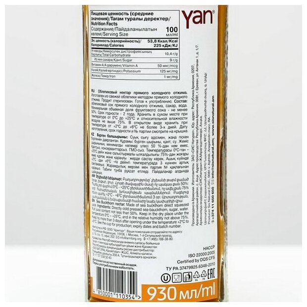 Нектар YAN Облепиховый 0,93л интересное: