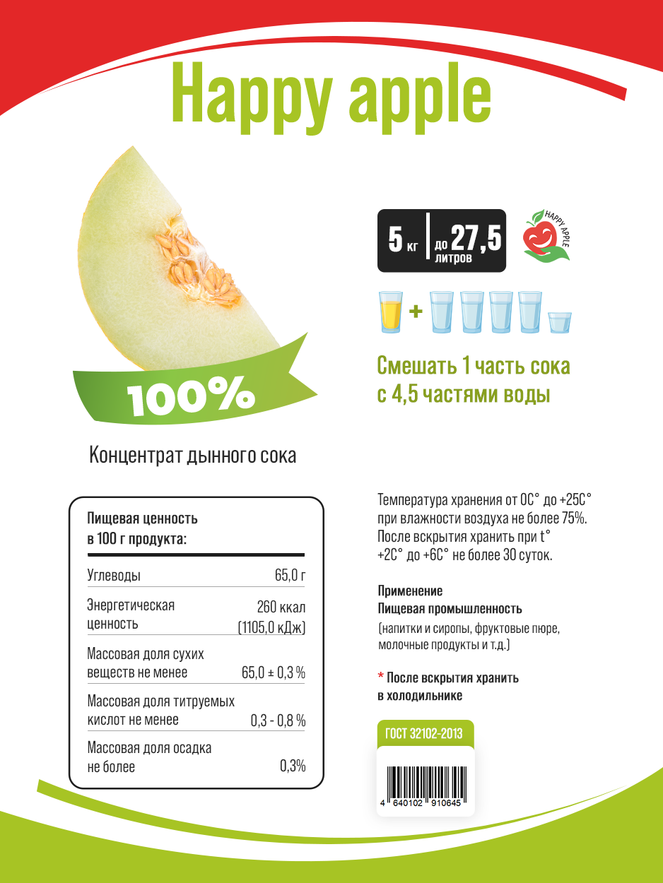Сок концентрированный Дынный 5 кг, кисл. 0,8% Happy Apple интересное:
