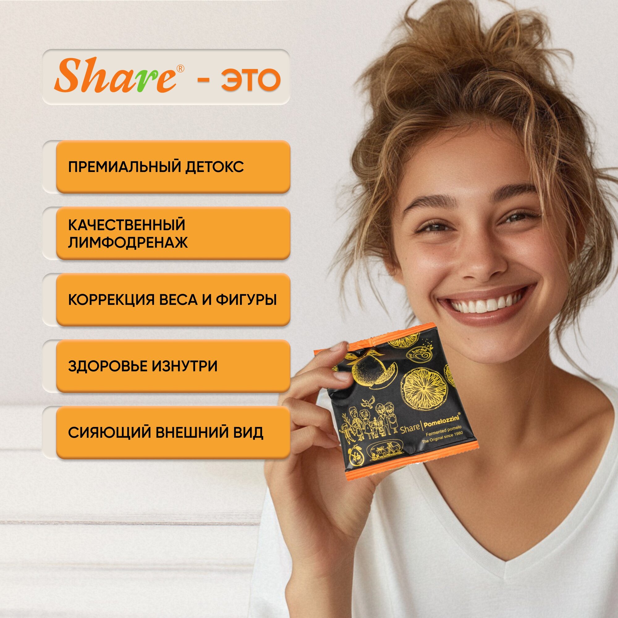 | Состав набора | 22 шт Share Pomelozzini Ферментированный помело в индивидуальной упаковке, Детокс для ЖКТ |