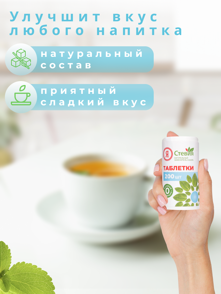 Купить Сахарозаменитель "Я Стевия" Стевия таблетки, 200 шт, натуральный состав.