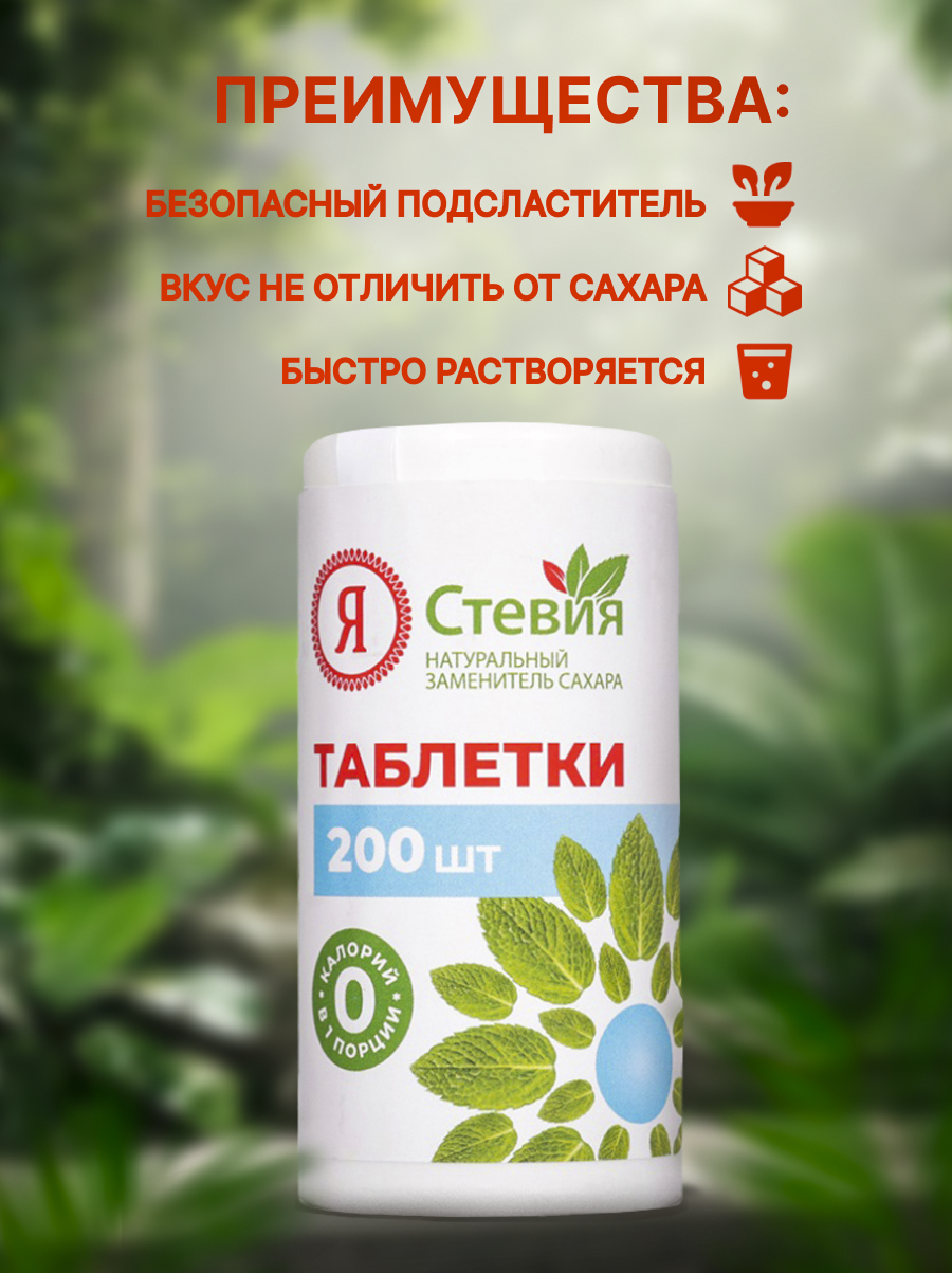 Сахарозаменитель Я Стевия в таблетках, 200 шт.