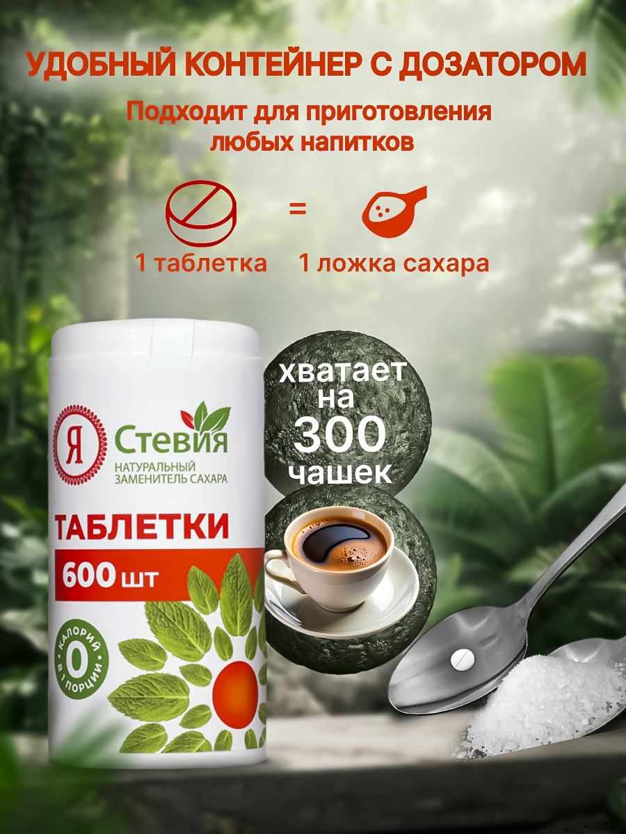 Сахарозаменитель стевия таблетки 600 шт, натуральный заменитель сахара "Я Стевия"