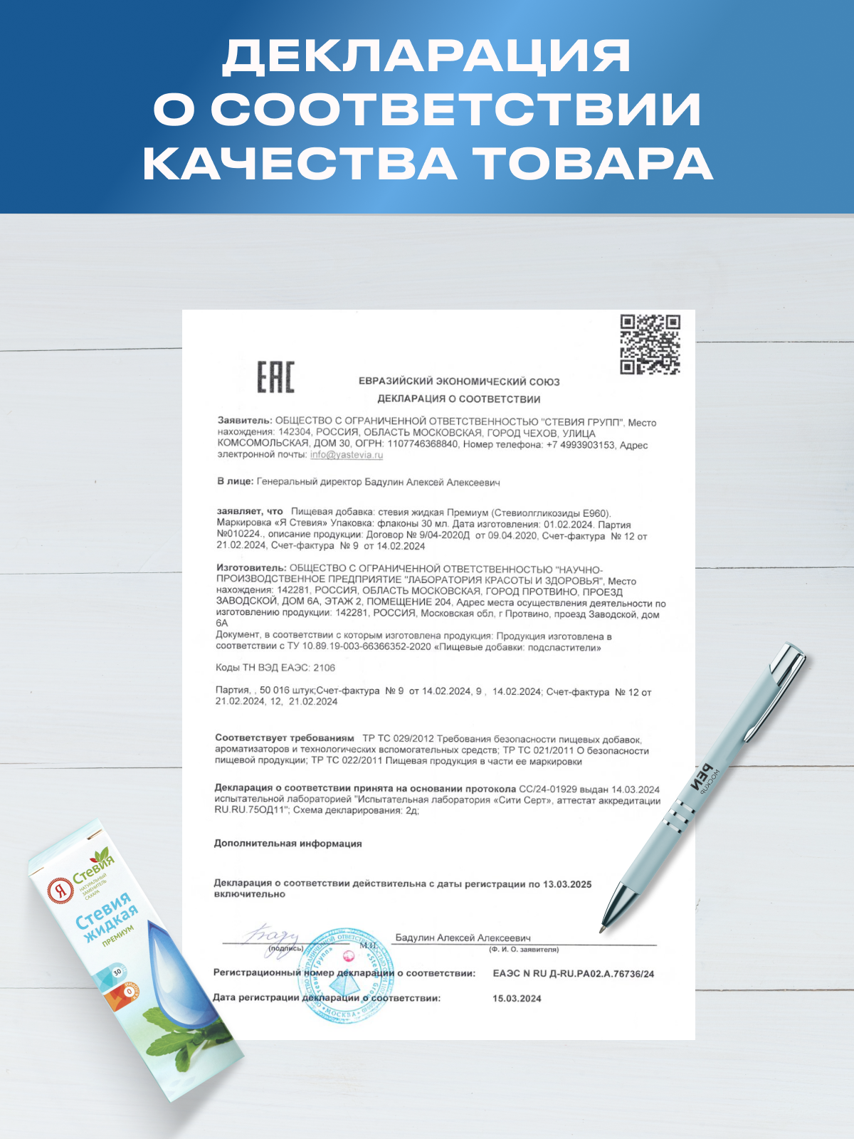 Сахарозаменитель стевия жидкая Премиум 30 мл. "Я Стевия" интересное: