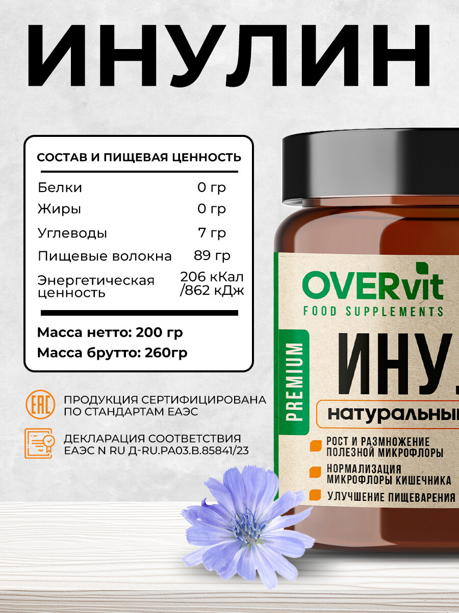 Инулин, натуральный пребиотик, для улучшения пищеварения, 200 г интересное: