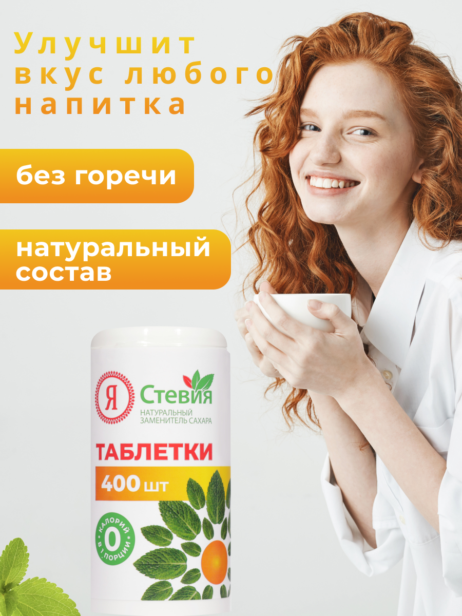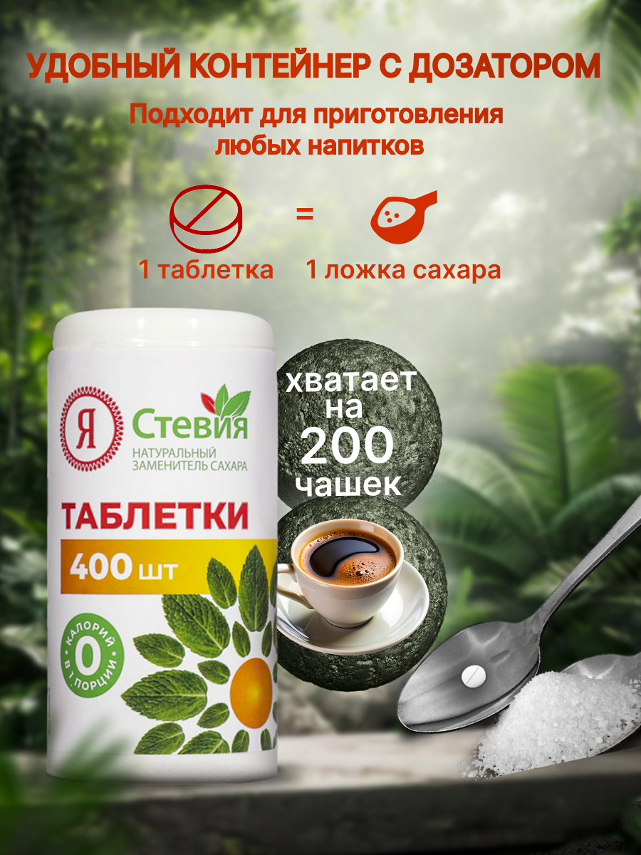 Сахарозаменитель стевия в таблетках 400 шт натуральный подсластитель "Я Стевия"