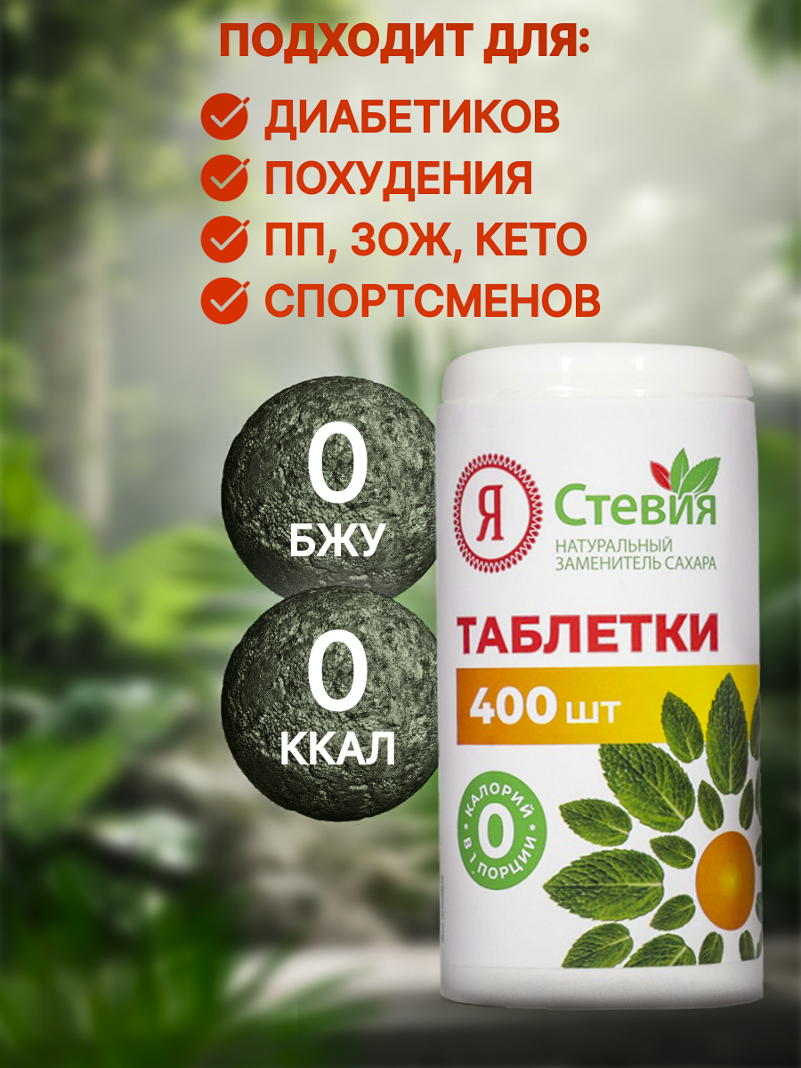 Сахарозаменитель натуральная стевия в таблетках, 400 шт. Для диабетиков, кето, зож, пп "Я Стевия"