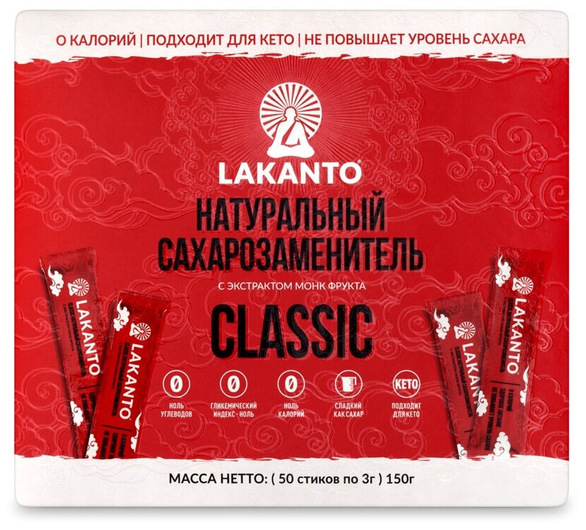 Lakanto/ Натуральный сахарозаменитель Classic, 50 стиков по 3 г