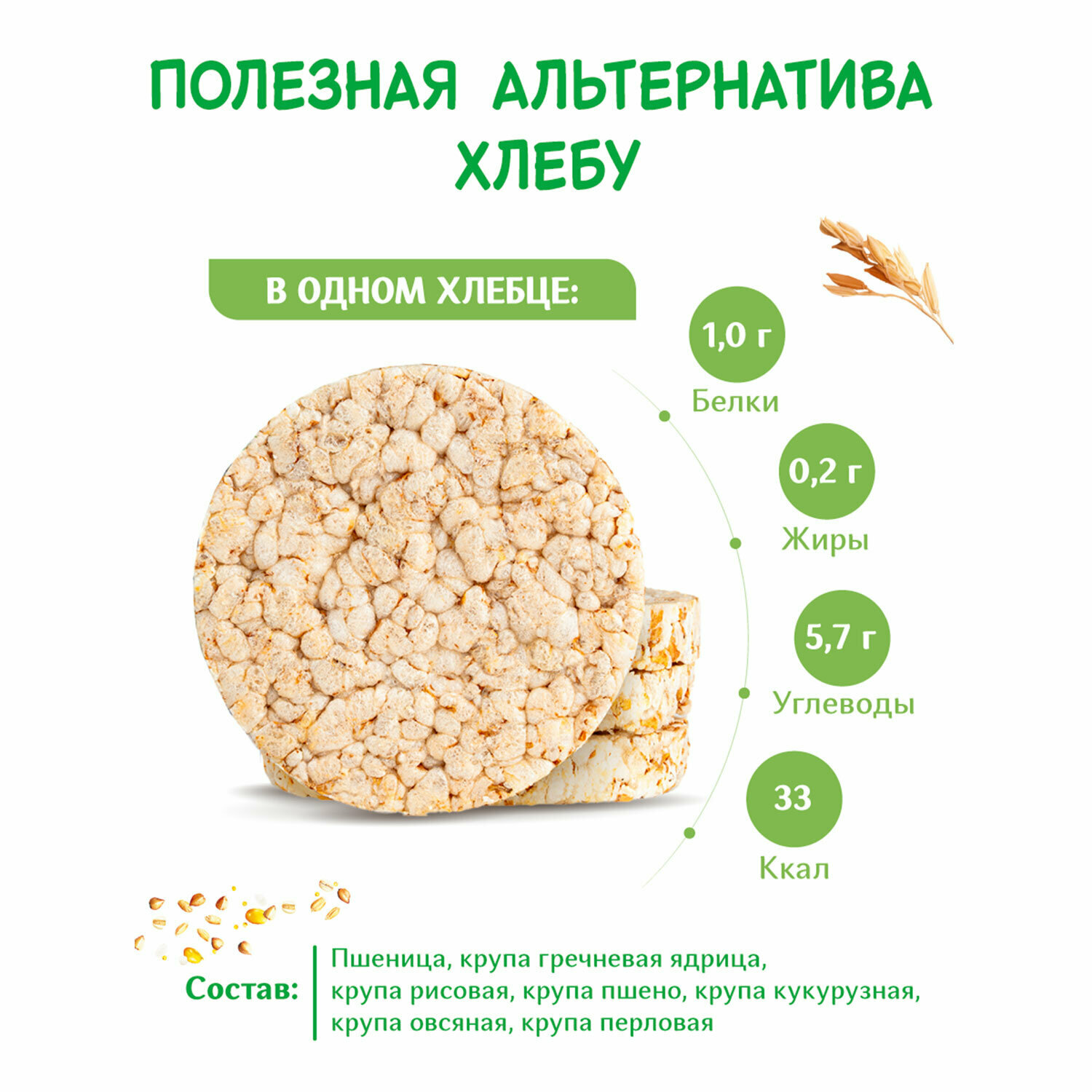 | Состав | Пшеница / крупа гречневая ядрица / крупа рисовая / крупа пшено / крупа кукурузная / крупа овсяная / крупа перловая |
