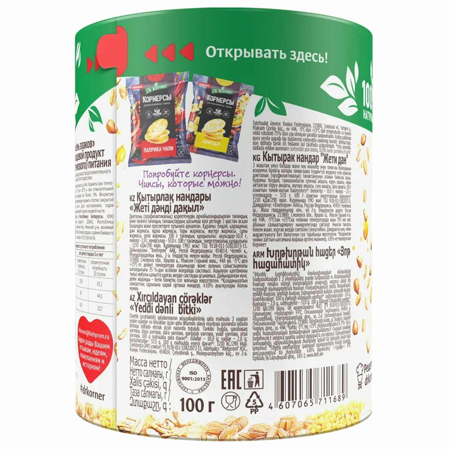 Хлебцы Dr. Korner "7 злаков", 100 гр. интересное: