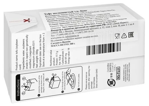 | Состав | Вода, соевые бобы (производство Япония) генетически не модифицированные, коагулянт хлорид магния E511 |