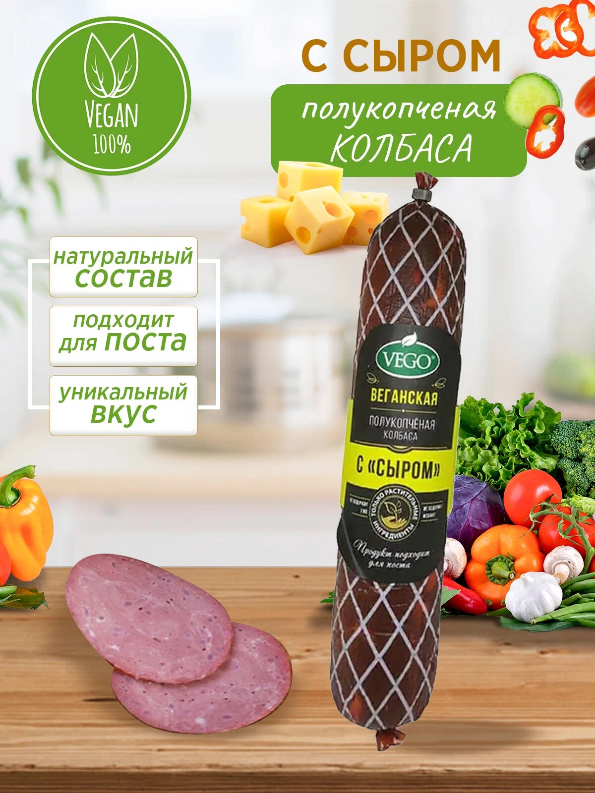 Колбаса веганская полукопченая с сыром постная 400 грамм VEGO интересное: