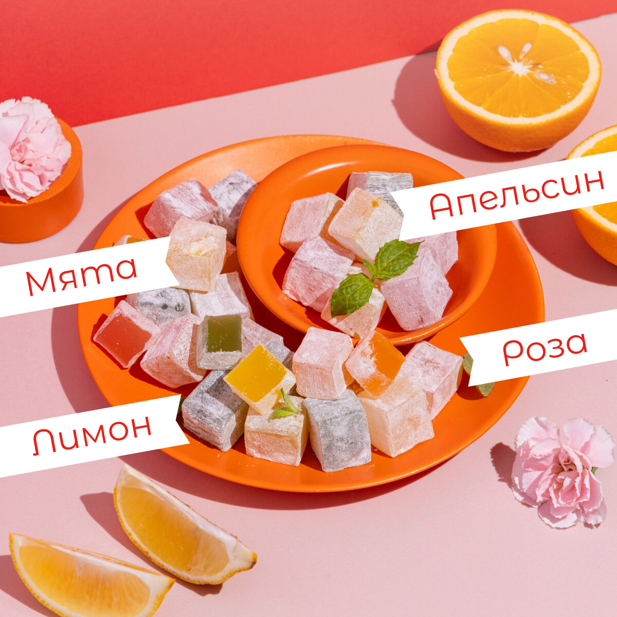 Купить Рахат-лукум Koska ассорти вкусов (роза, лимон, апельсин, мята), 250 г / Восточные сладости