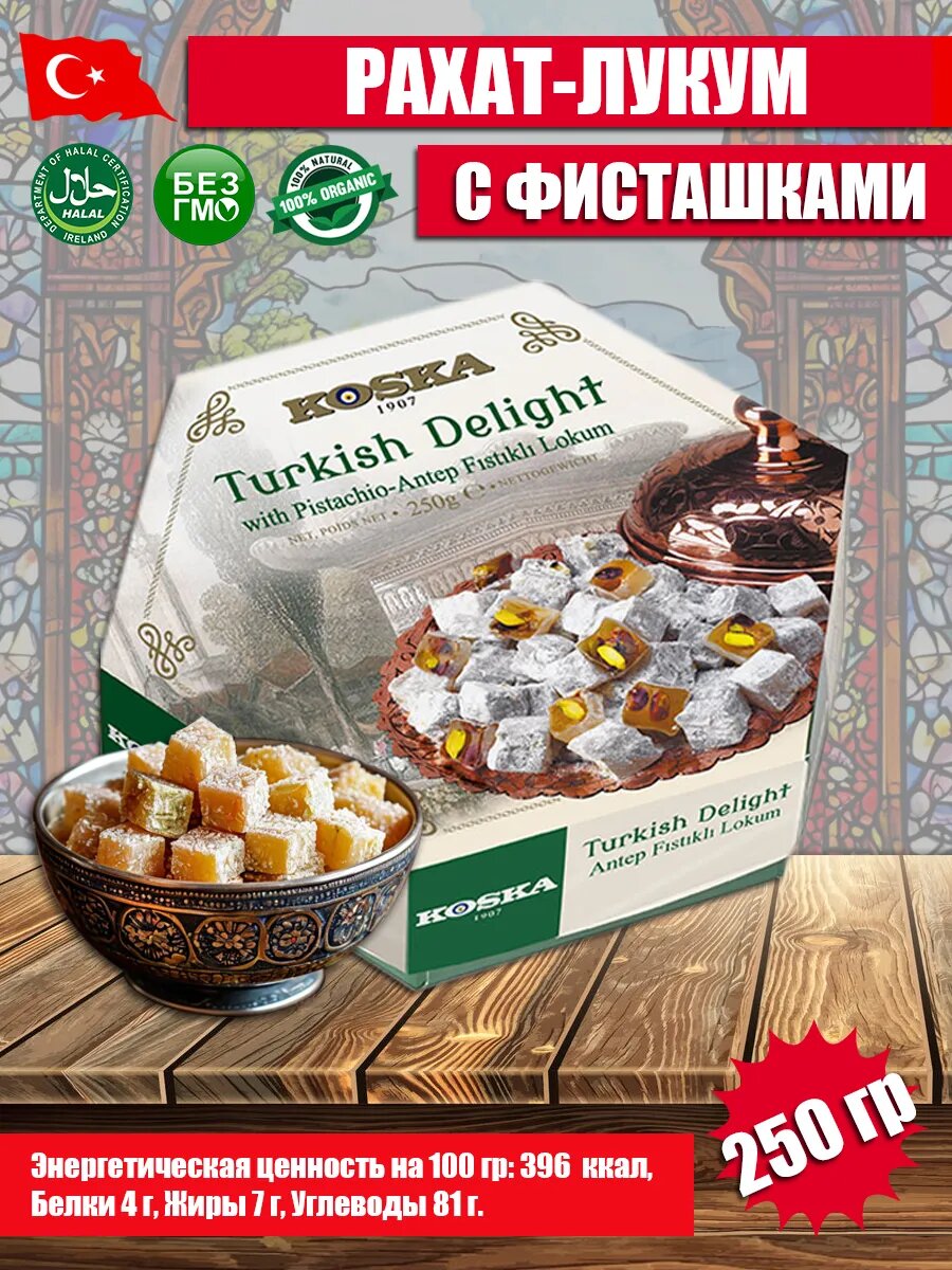 Рахат-лукум с фисташками, Koska, 250 г / Восточные, турецкие сладости