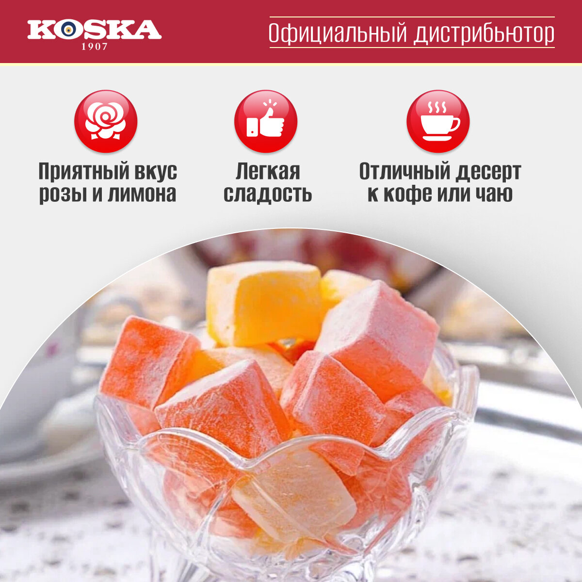 KOSKA Рахат лукум с ароматом розы и лимона 125 гр