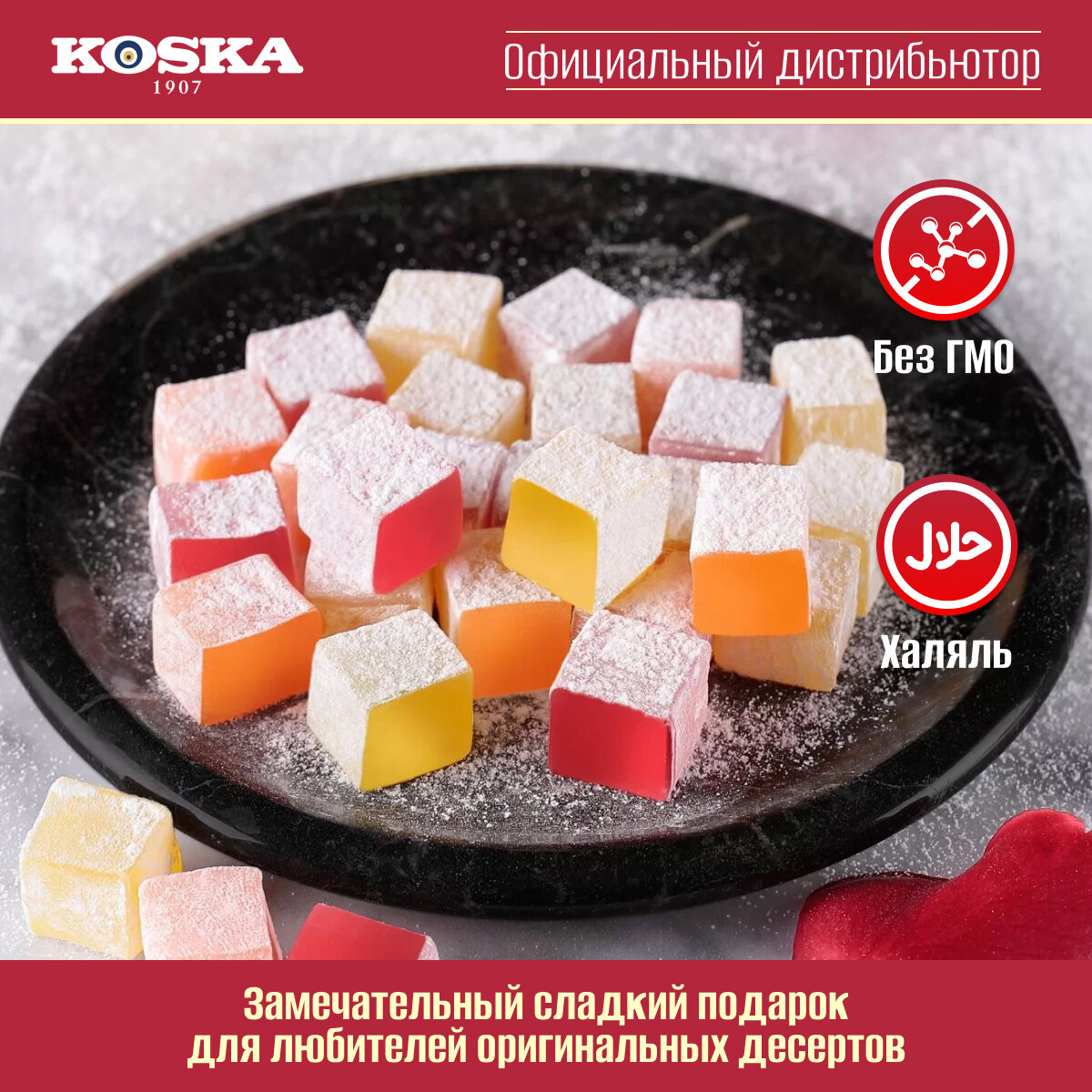 Рахат-лукум со вкусом розы, Koska, 500 г / Восточные сладости