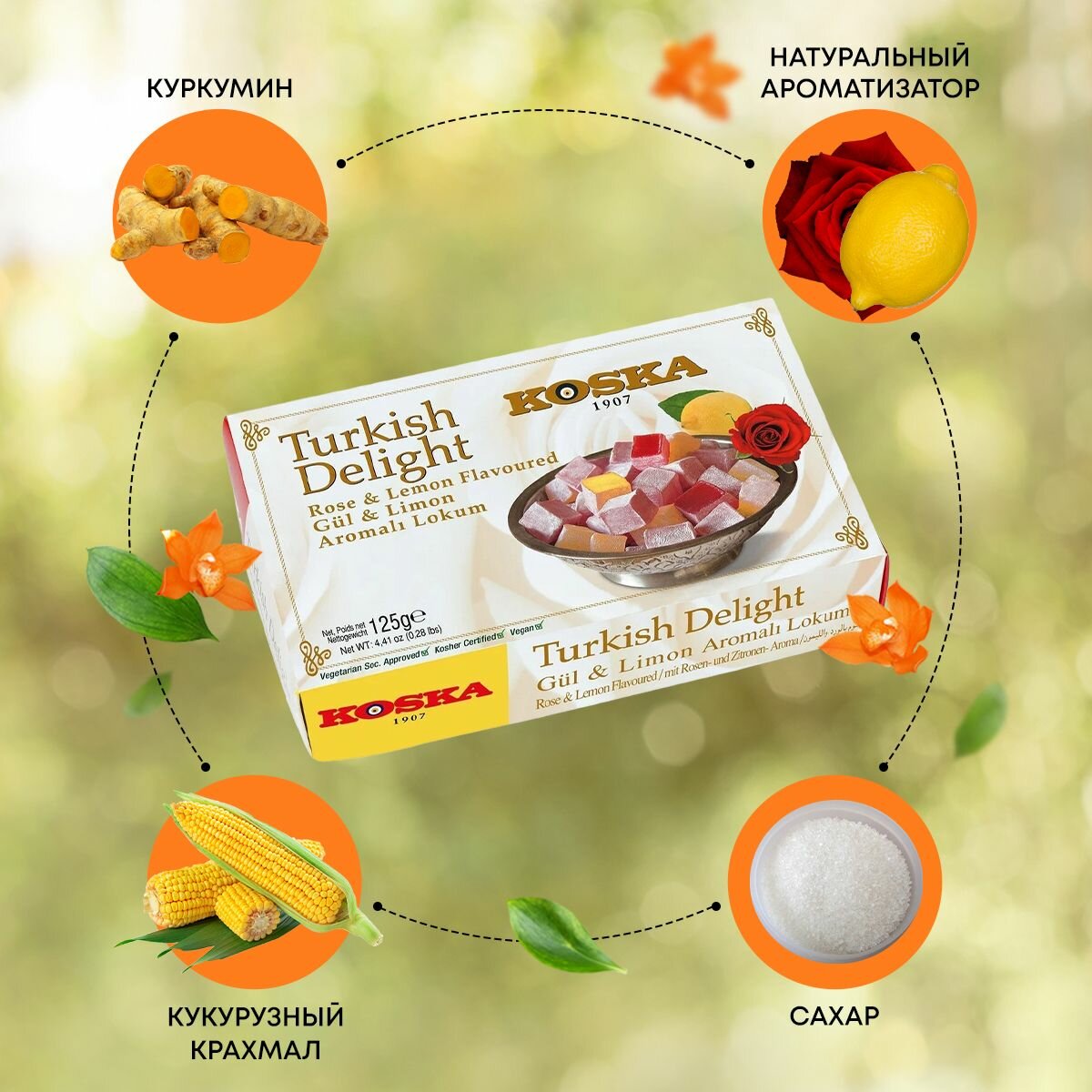 KOSKA Рахат лукум с ароматом розы и лимона 125 гр