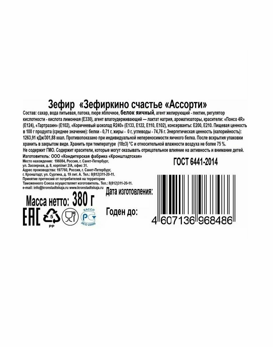 Кронштадтская фабрика, Зефир Кронштадтский "Зефиркино счастье" Ассорти, 500 грамм