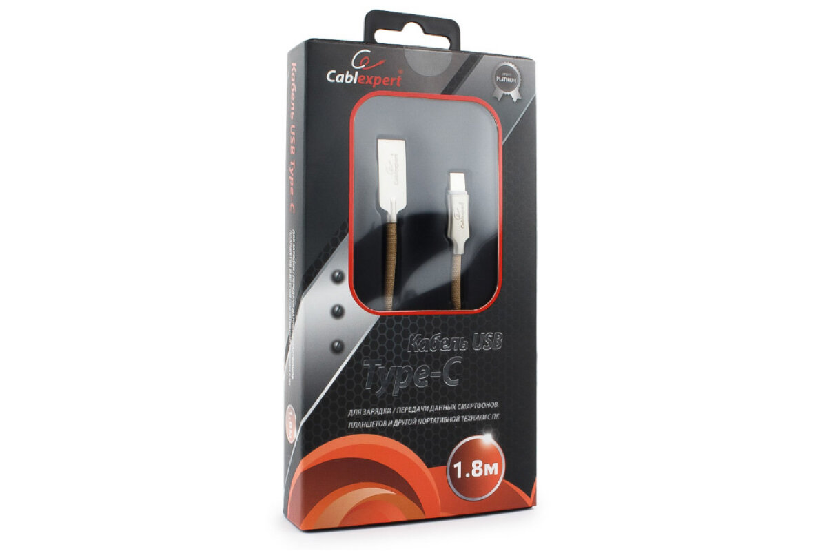 Cablexpert Кабель USB 2.0 CC-P-USBC02Gd-1.8M AM/Type-C, серия Platinum, длина 1.8м, золотой, блистер