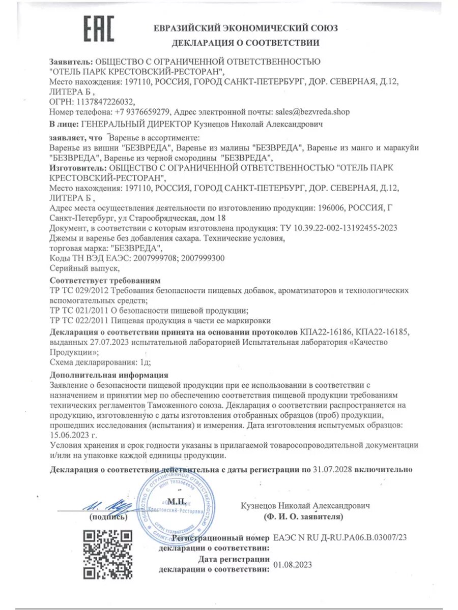 | Бренд | БЕЗВРЕДА |