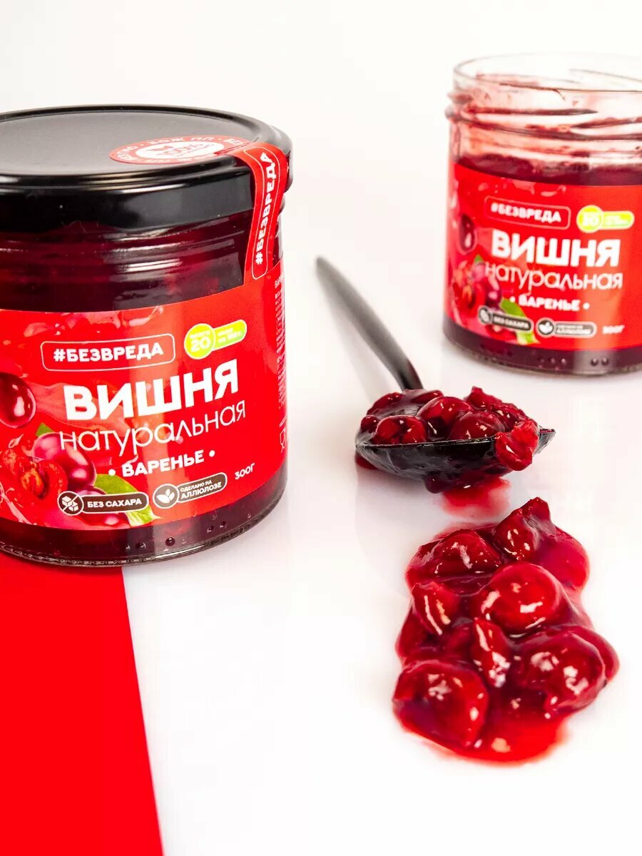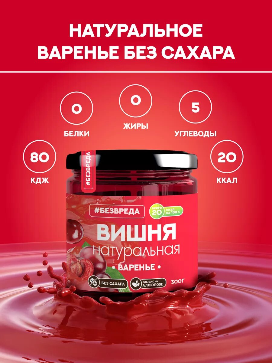 Купить Варенье из вишни без сахара 300 гр. "безвреда" / Вишневое варенье / Варенье без сахара