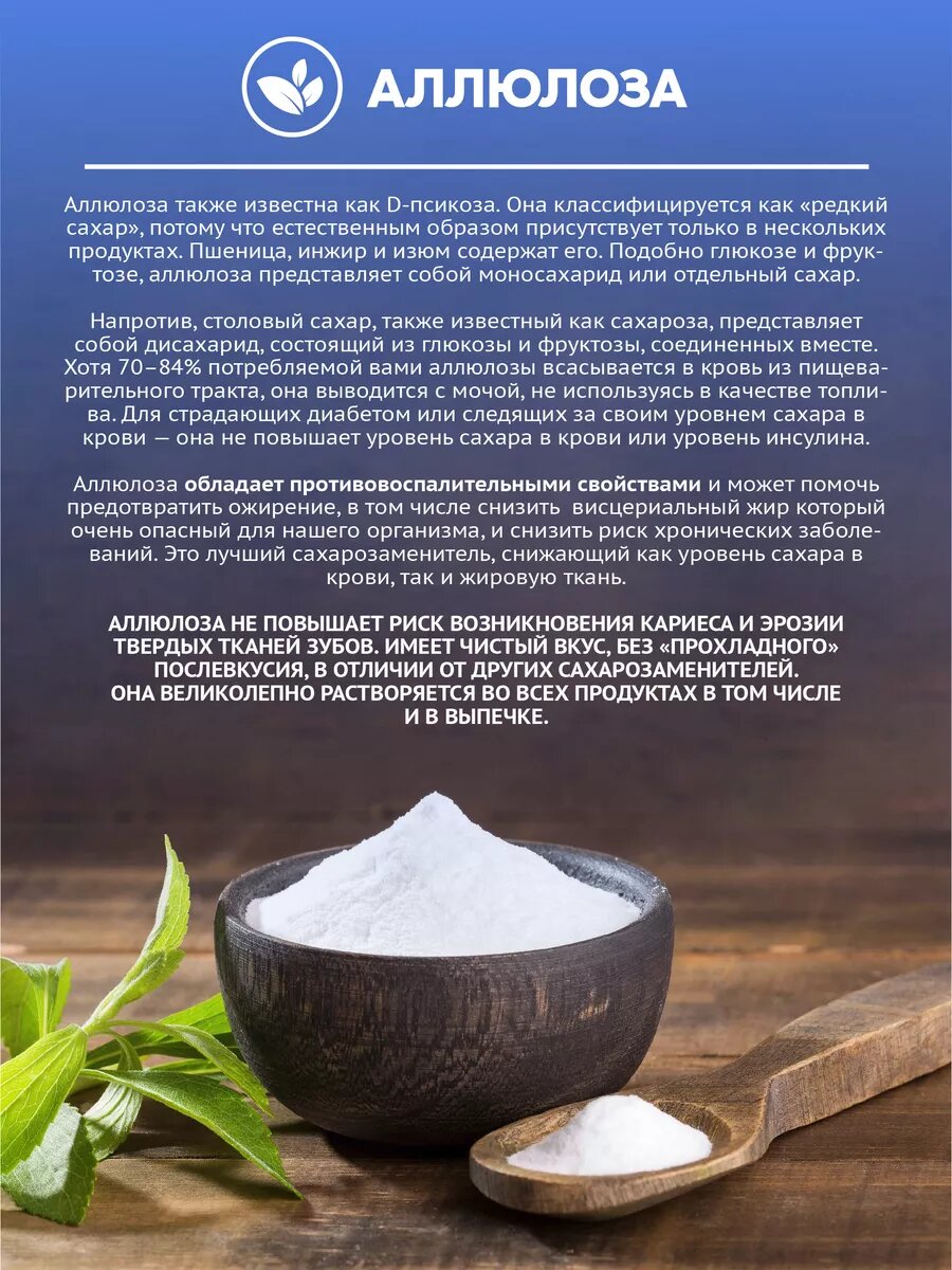 | Состав | сахарозаменитель (аллюлоза) |