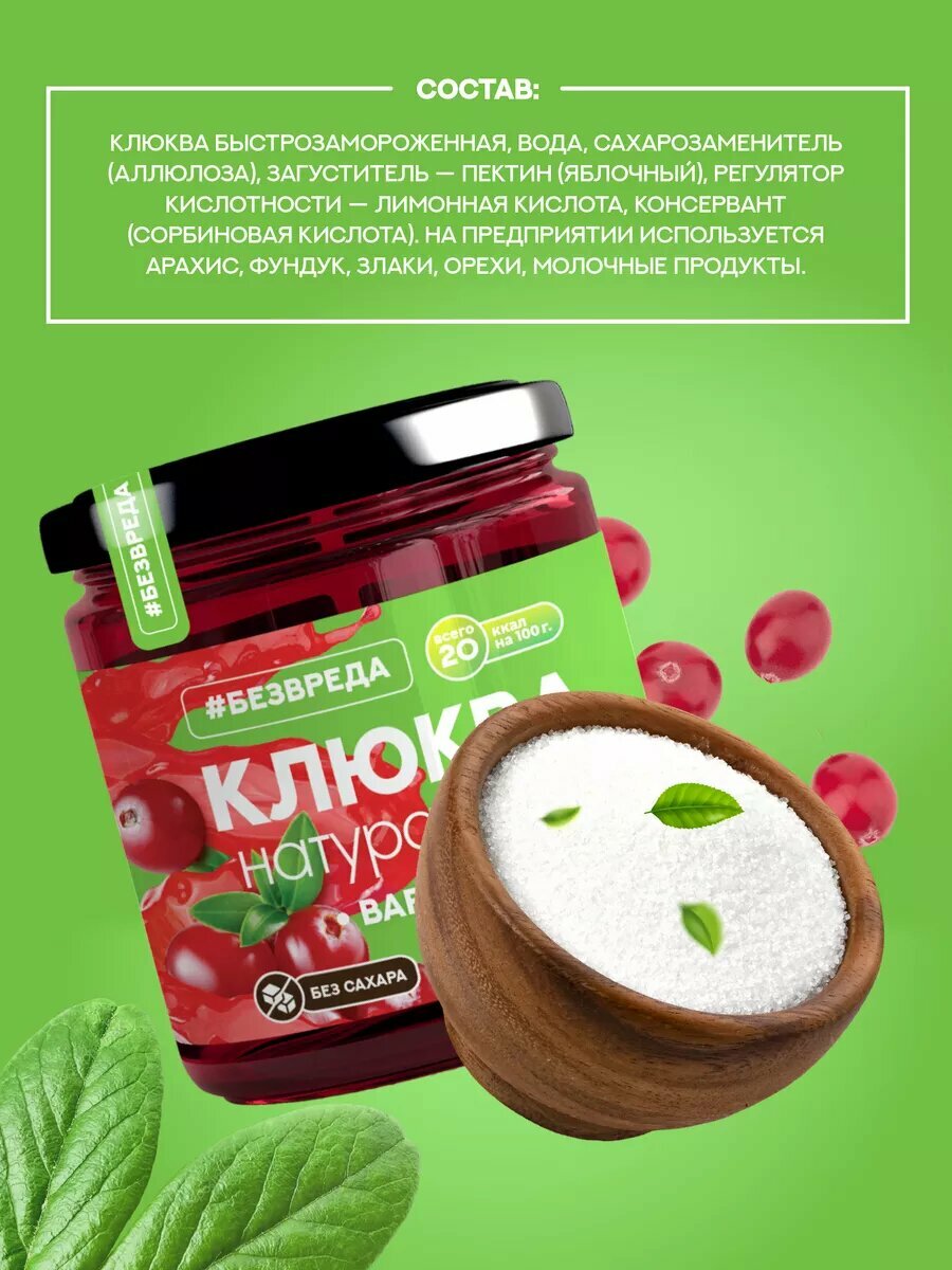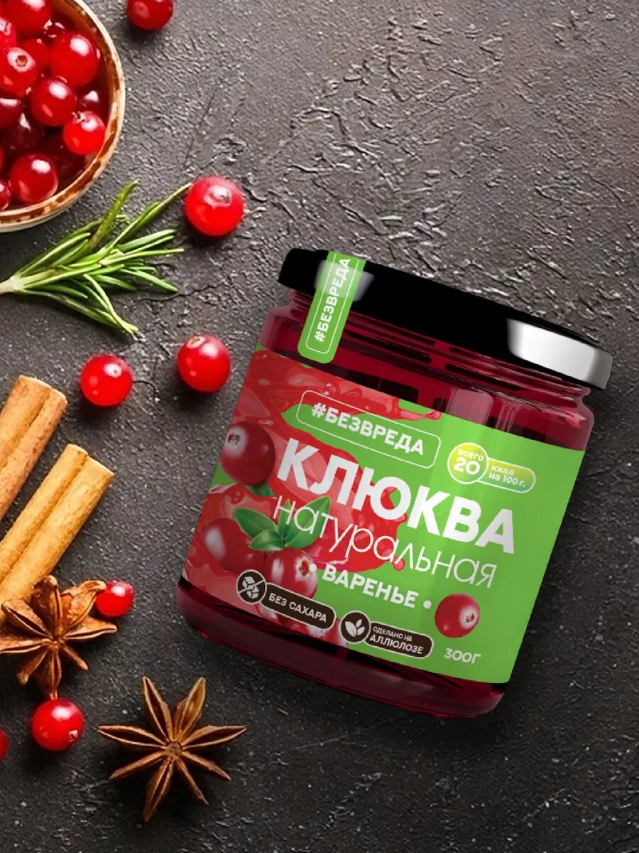 Купить Варенье из клюквы без сахара 300 гр. "безвреда" / Клюквенное варенье / Варенье без сахара