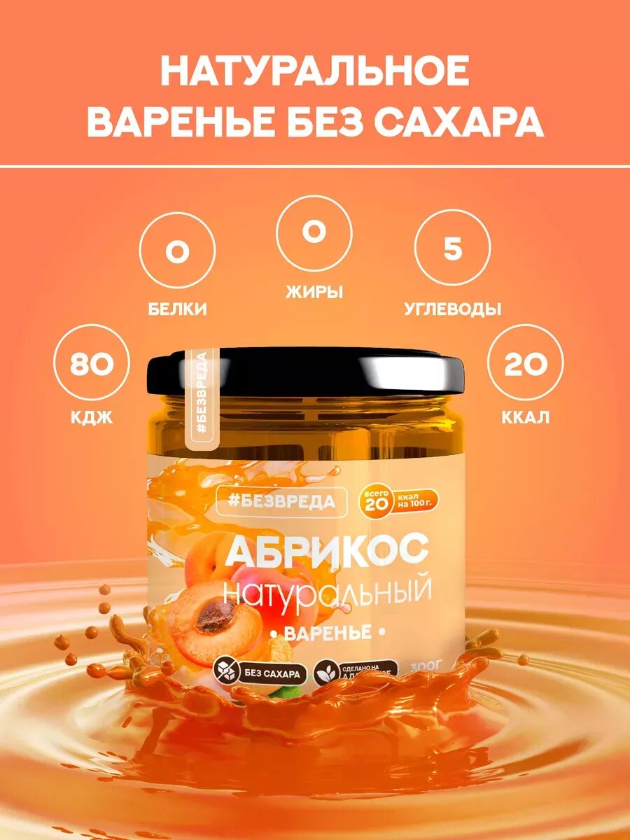 Варенье из абрикоса без сахара 300 гр. "безвреда" / абрикосовое варенье / варенье без сахара