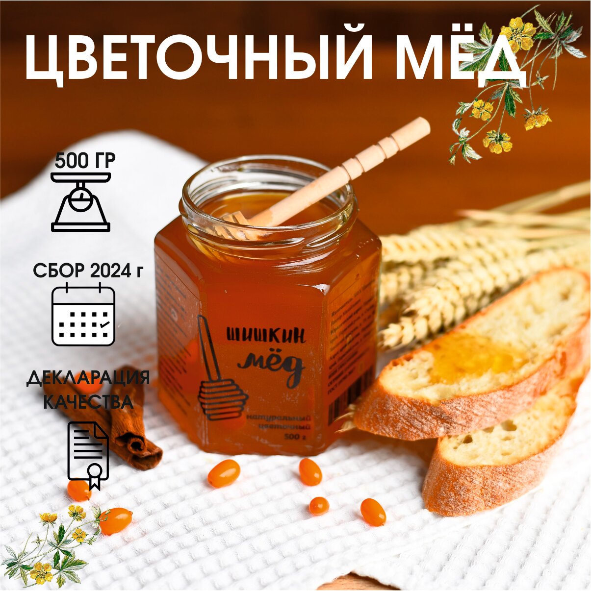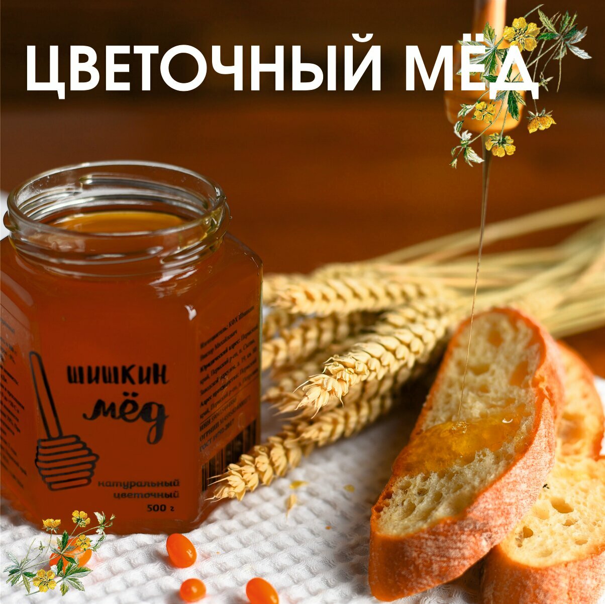 Мед натуральный, цветочный, разнотравье, 500 гр, сбор 2024, Шишкин Мед интересное: