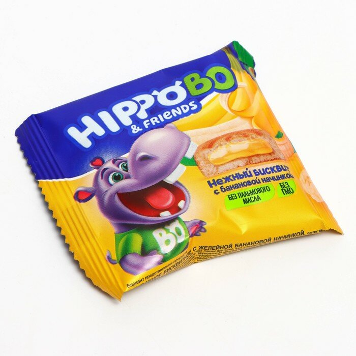 Бисквитное пирожное HIPPO BO & friends с банановой начинкой, 32 грамма интересное: