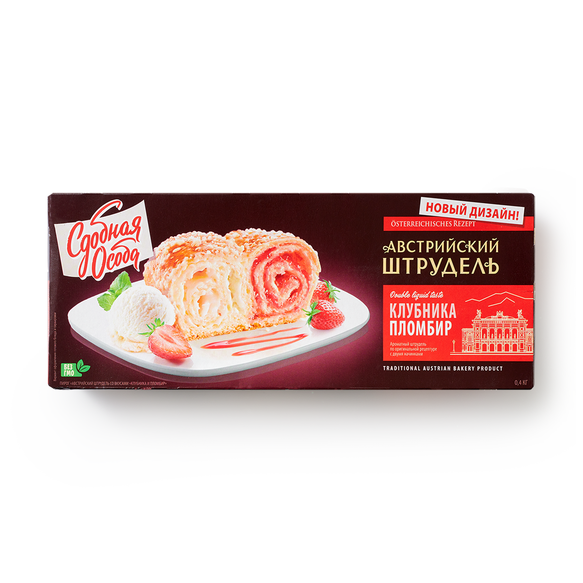 Пирог австрийский штрудель клубника и пломбир, 400 гр