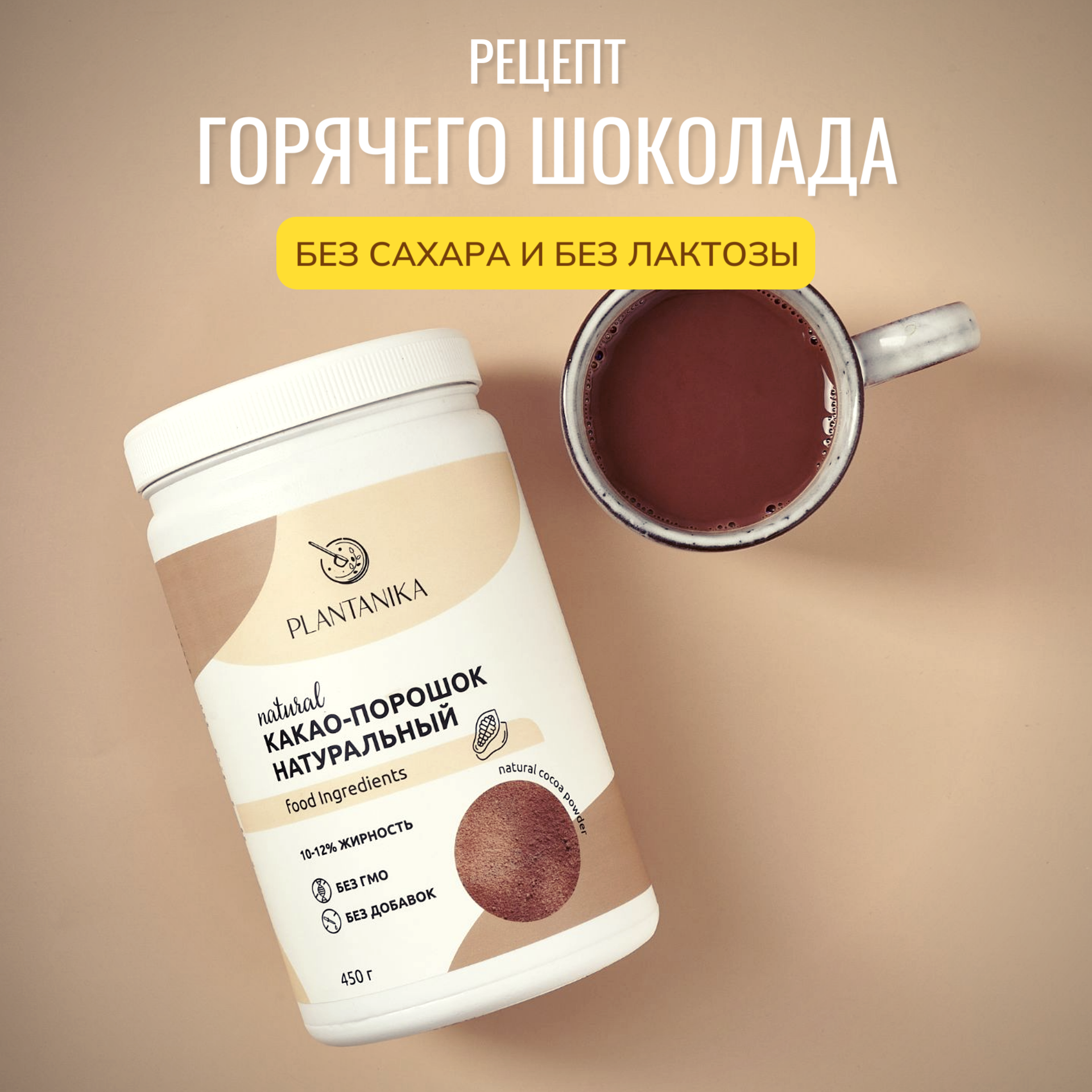 Натуральный какао порошок Plantanika без сахара 450 г