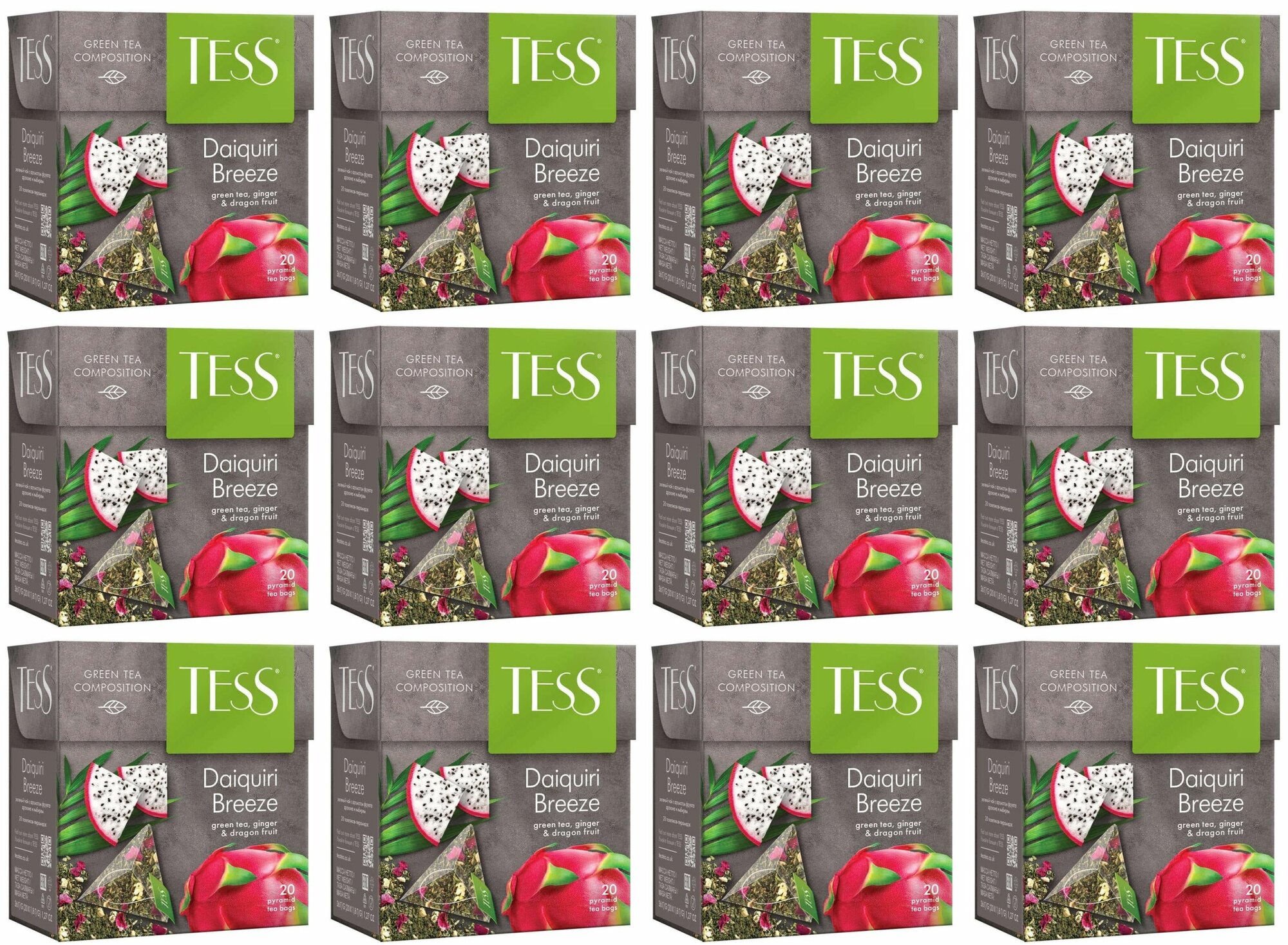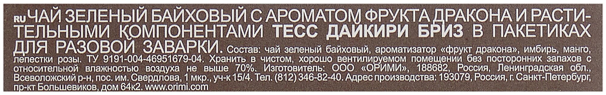 Чай Tess Daiquiri Breeze зеленый с ароматом фрукта дракона и растительными компонентами 1.8*20 в пирамидках интересное: