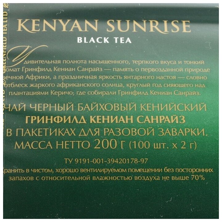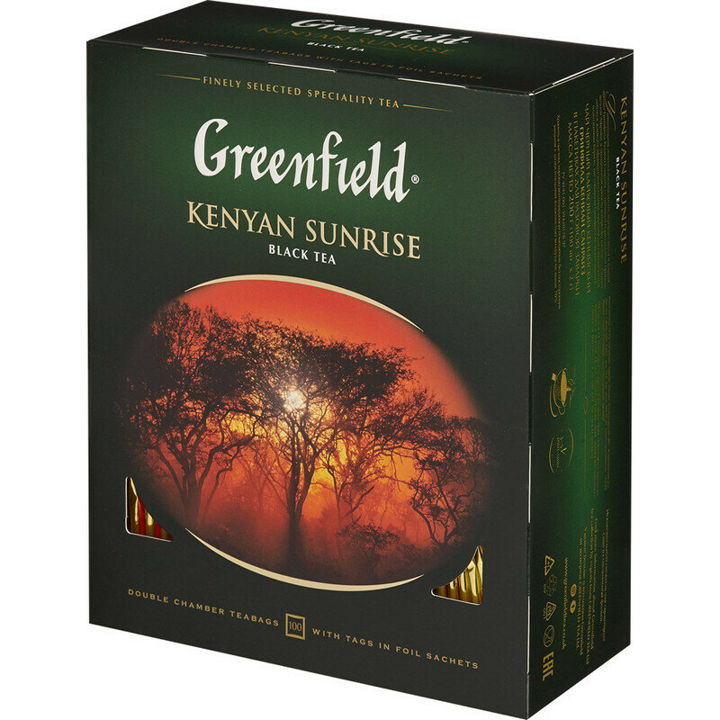 Купить Чай GREENFIELD (Гринфилд) "Kenyan Sunrise" ("Рассвет в Кении"), черный, 100 пакетиков в конвертах по 2 г, 0600-09