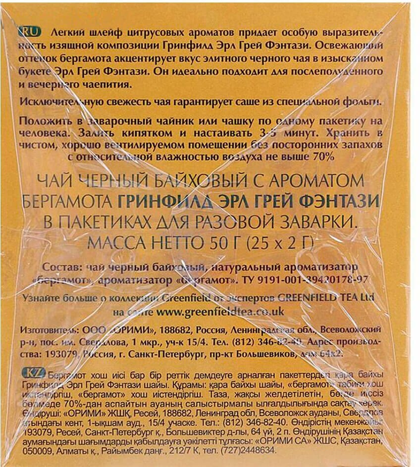 СохранитьГринфилд Эрл Грей Фэнтази(2гх25п)чай пак.черн.аром. интересное: