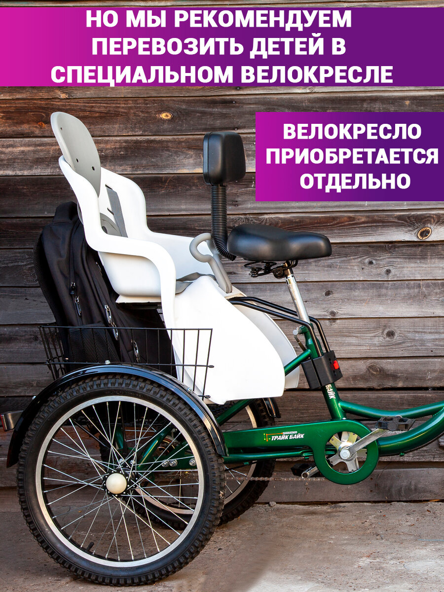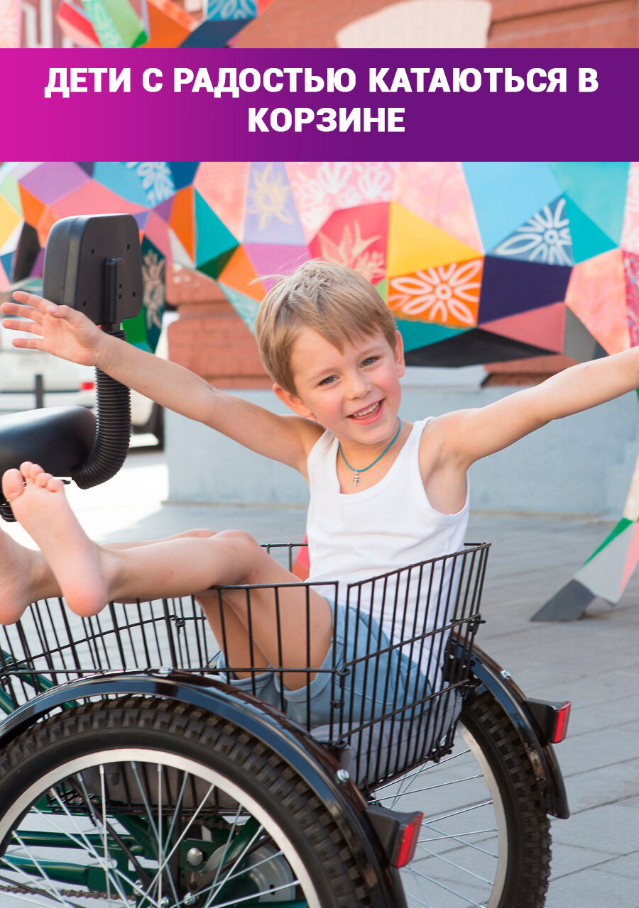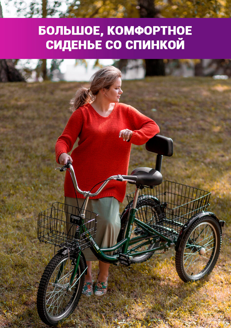 Трехколесный велосипед для взрослых, с 2 корзинами, цвет зеленый интересное: