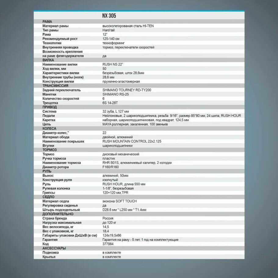 | Максимальный вес велосипедиста | 100 кг |