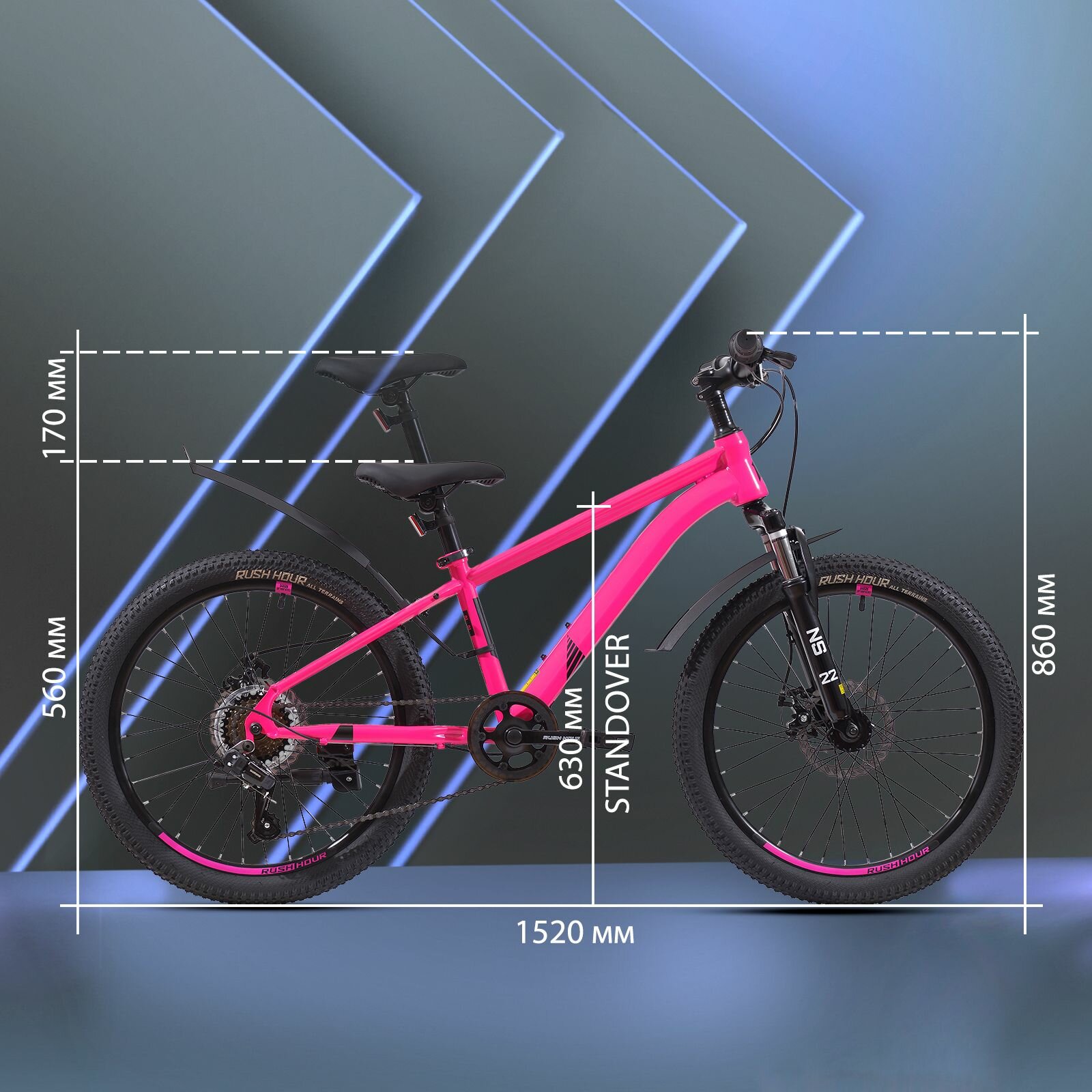 Купить Велосипед детский горный дисковый 22" рост 125-140см 6 скоростей розовый рама 12" велик 9 лет 7 лет 8 лет переключатель SHIMANO скоростной RUSH HOUR NX 305