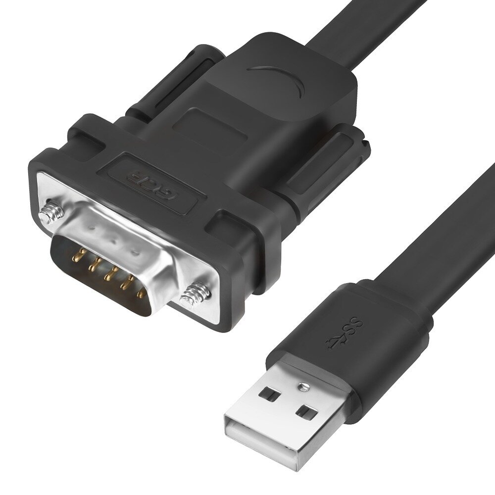 Конвертер-переходник-адаптер 2 м плоский кабель GCR-UOC5M-BCG-2.0m для компьютеров, принтеров, касс, ресиверов, черный, USB 2.0 AM/DB9 RS-232