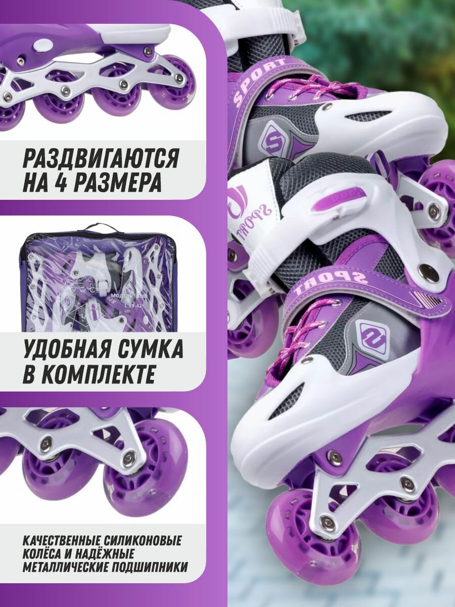 Роликовые коньки раздвижные, фиолетовый, L, 8807