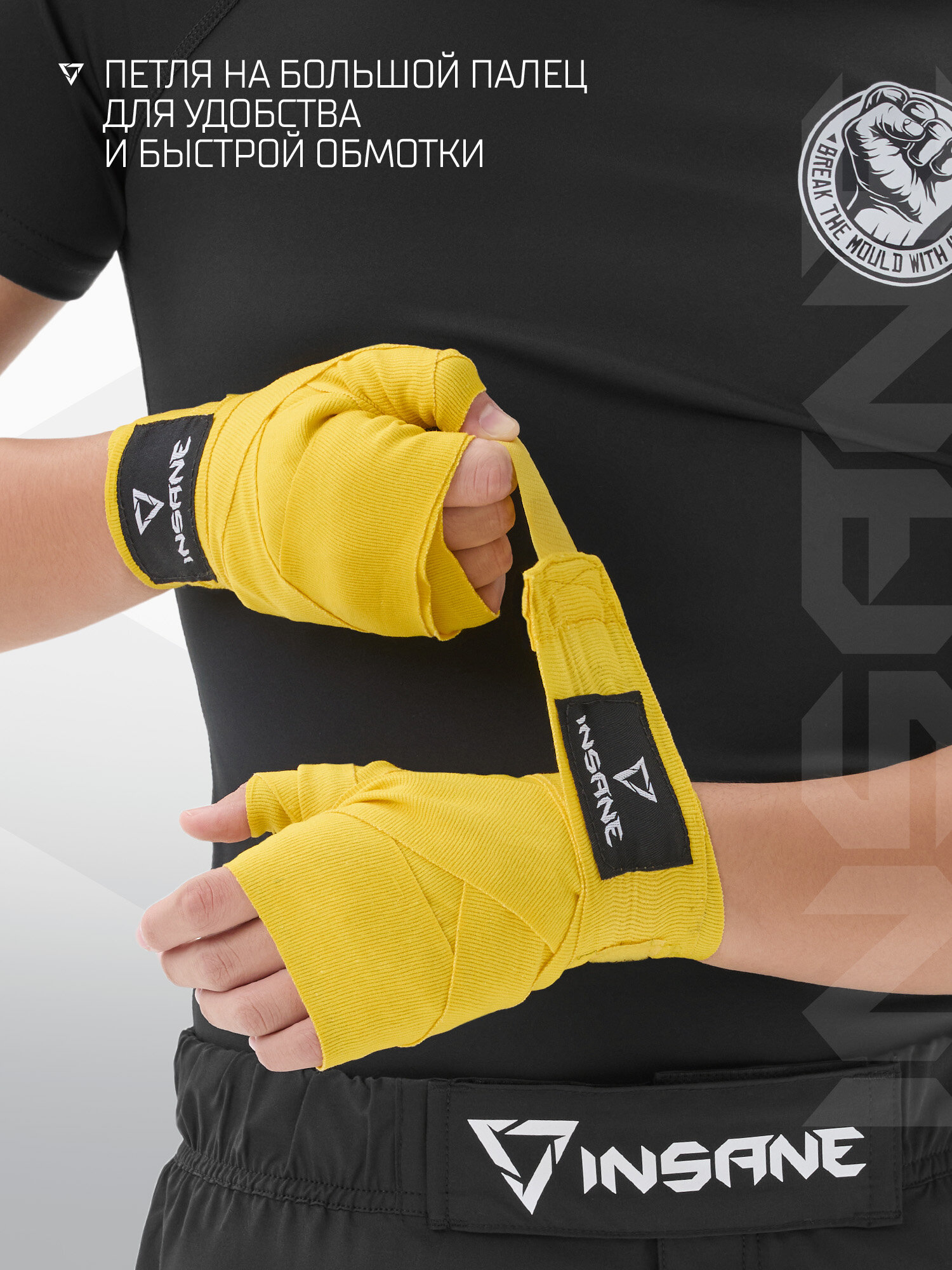 Бинт боксерский INSANE FIGHT IN23-HW600, хлопок/нейлон, желтый, 2,5 м интересное: