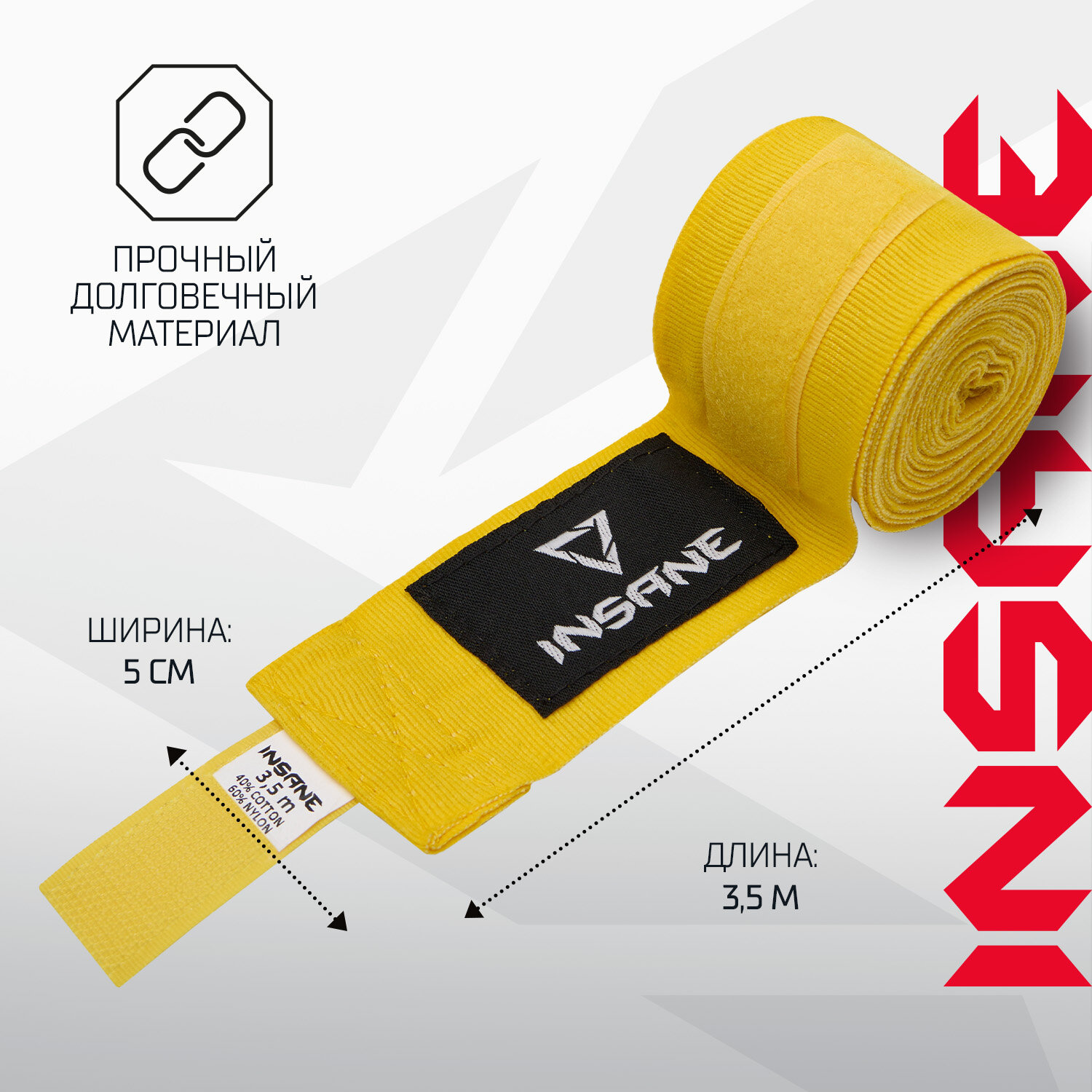 Бинт боксерский INSANE FIGHT IN23-HW600, хлопок/нейлон, желтый, 3,5 м интересное: