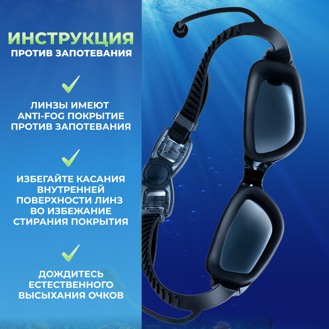 Очки для плавания взрослые, женские, мужские / Подводные плавательные очки для бассейна черные