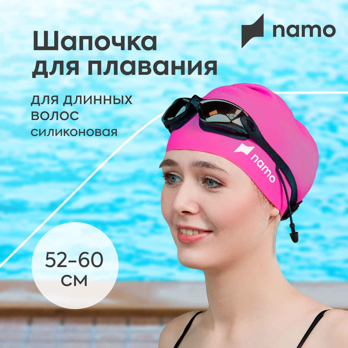 Шапочка для плавания для длинных волос силиконовая NAMO,ярко-розовая, 52/60 интересное: