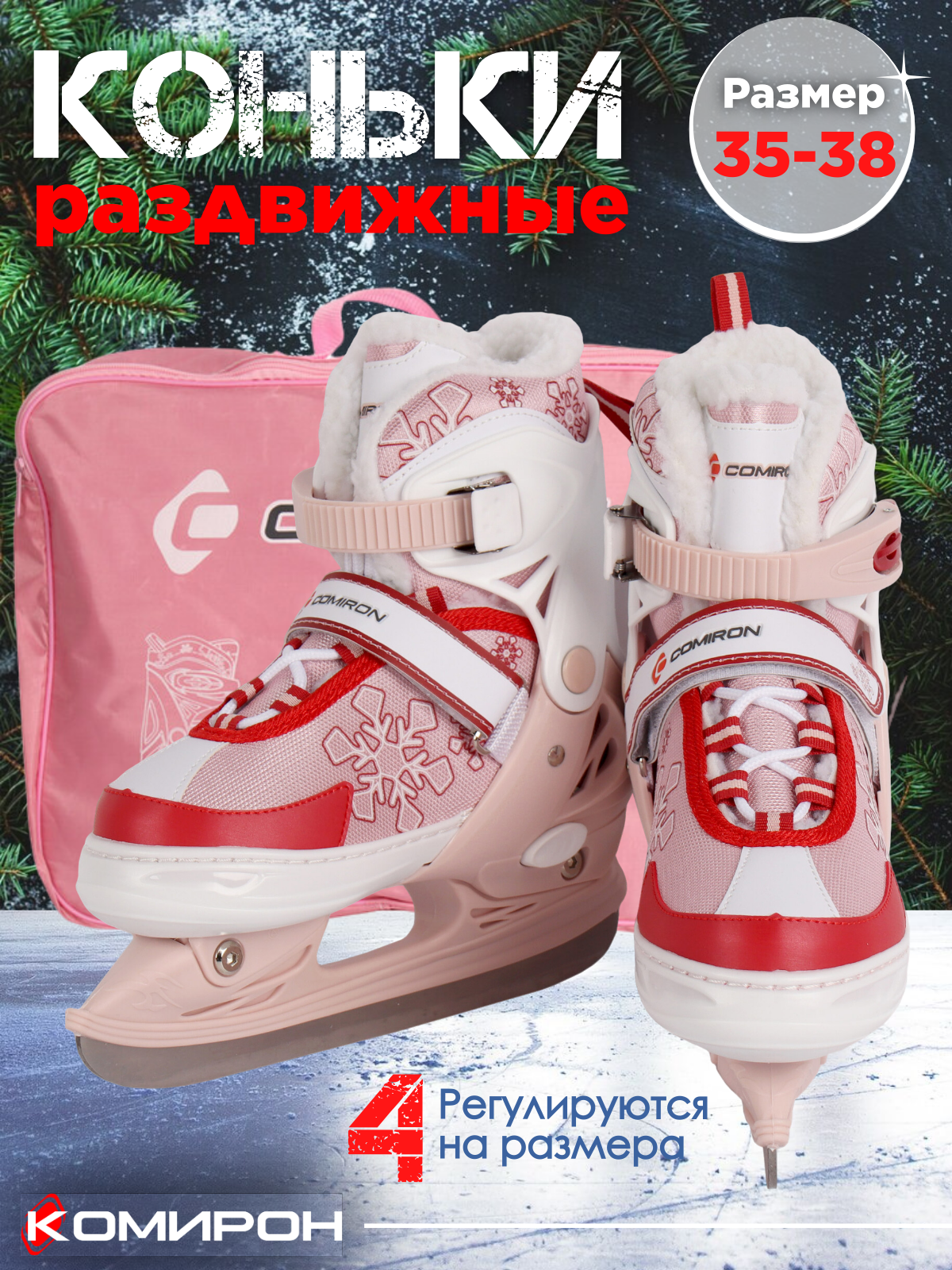 Купить Коньки ледовые раздвижные COMIRON / размер 35-38 / розовые