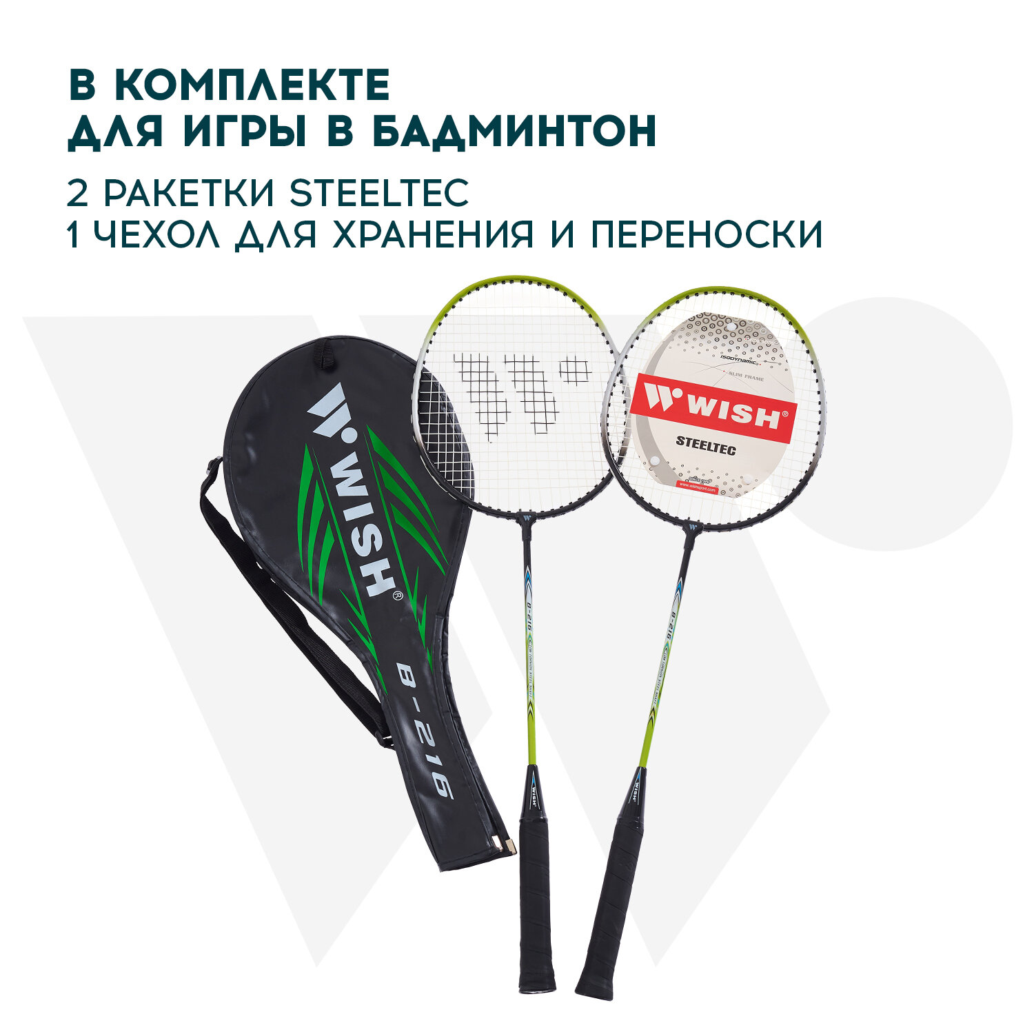 Набор для бадминтона WISH Steeltec 216 (2 ракетки), зеленый 1/25 интересное: