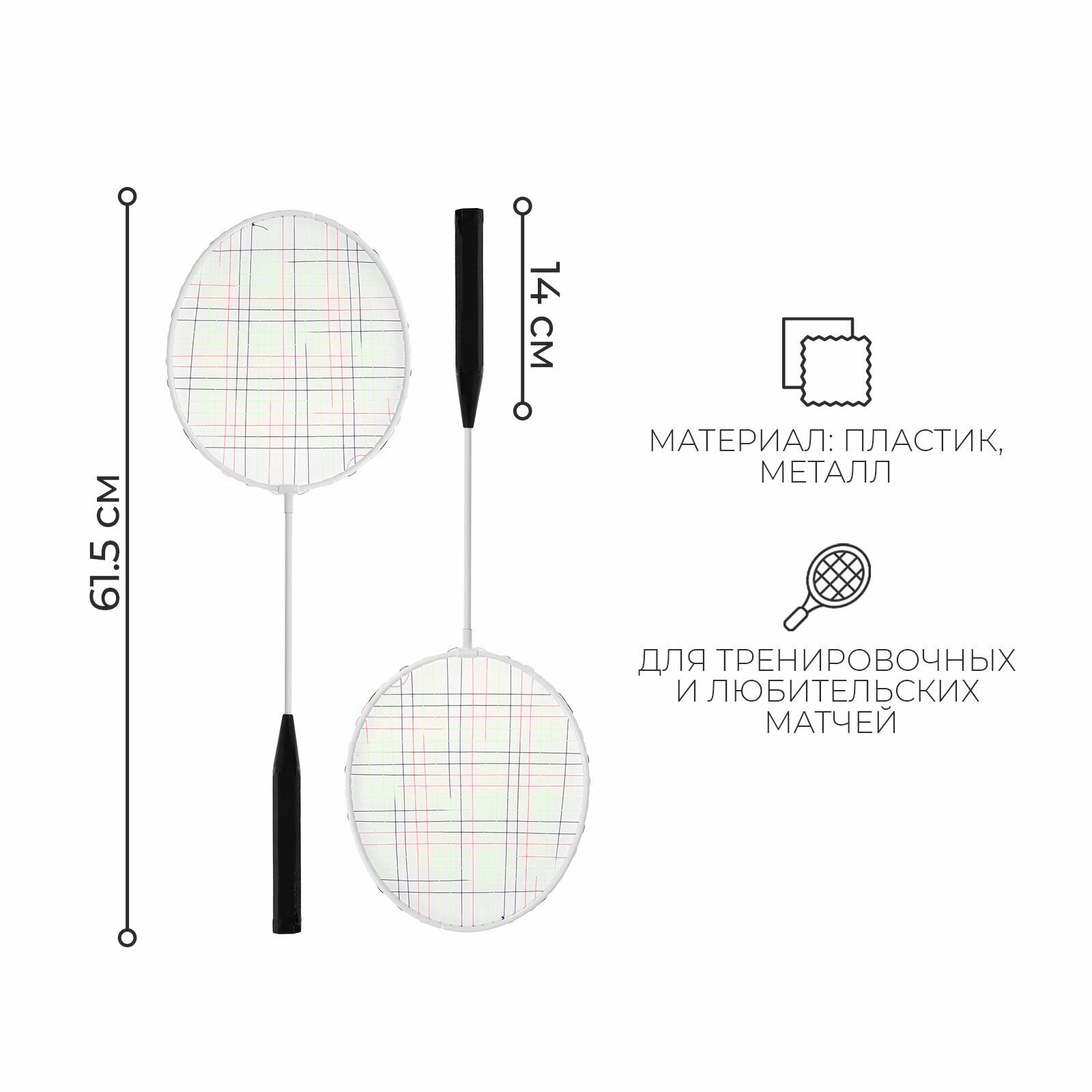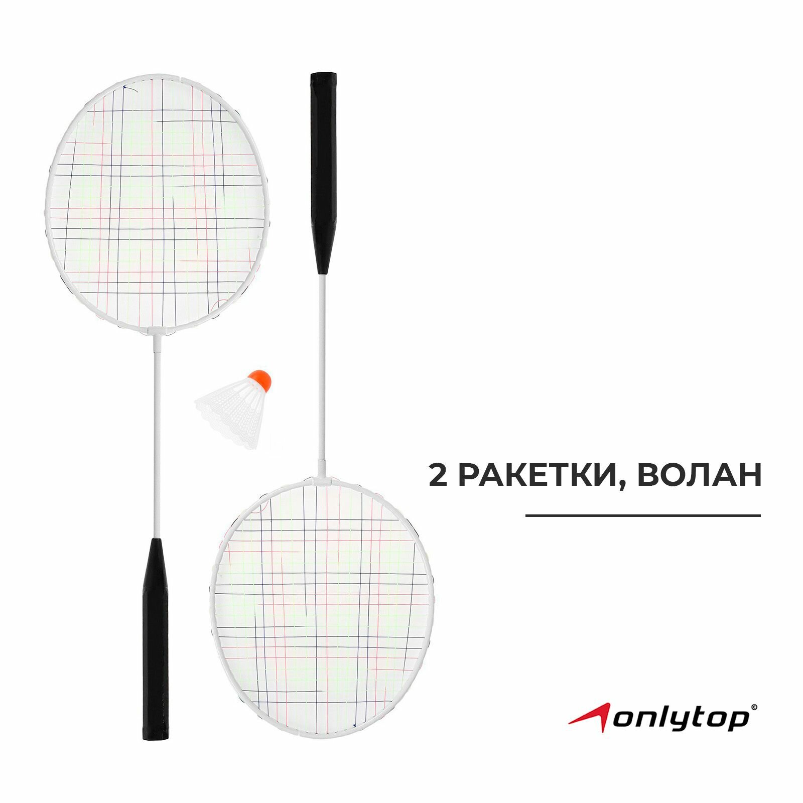 Набор для бадминтона ONLYTOP: 2 ракетки, волан, в сетке, цвет белый интересное:
