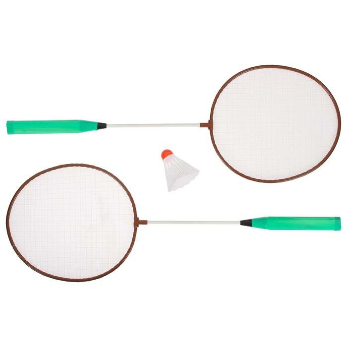 Набор для бадминтона ONLYTOP: 2 ракетки, волан, в сетке, цвета микс (комплект из 5 шт)