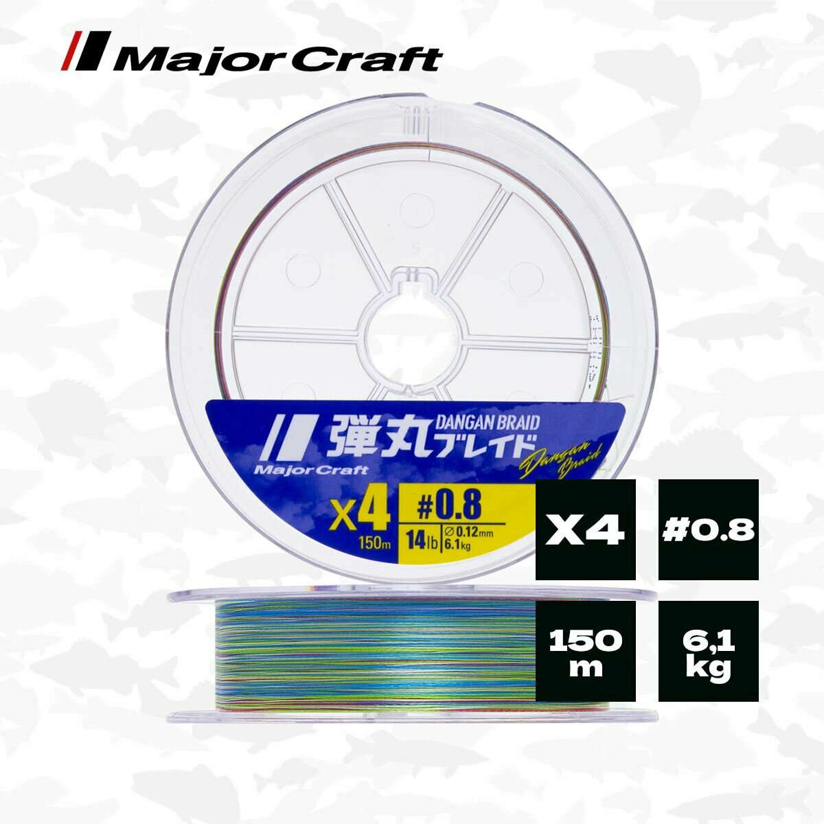 Шнур Major Craft DANGAN Braid PE X-8 150м MULTICOLOR # 0.8 (16Lb) DB8-150/0.8MC