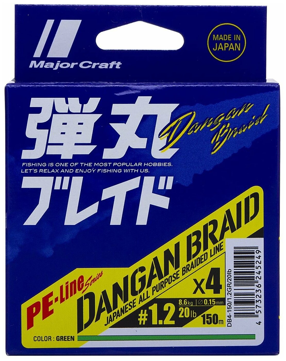 Плетеный шнур для рыбалки Major Craft Dangan Braid 150m X4 (зеленый) DB4-150/2GR